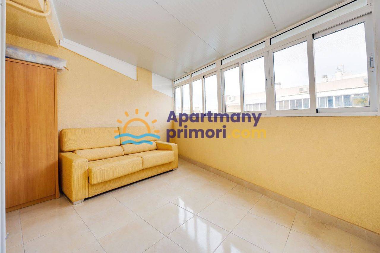 Realitná kancelária Leaders & Partners vám ponúka na predaj zariadený podkrovný apartmán 2+kk (37 m²) s loggiou, ktorý sa nachádza v rezidenčnom dome v lokalite Torrevieja v Španielsku, približne 400 metrov od pláže Los Locos.