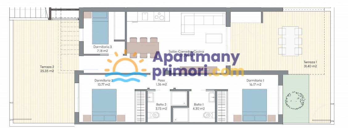 - 2 terasy - 25,35 m2 a 31,40 m2