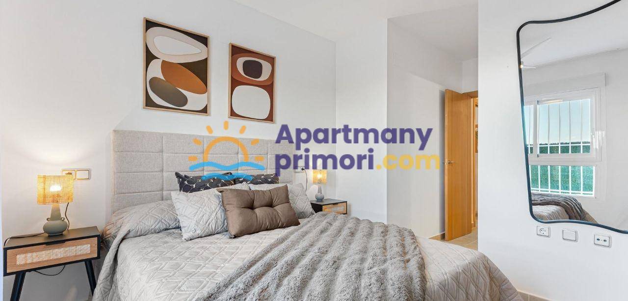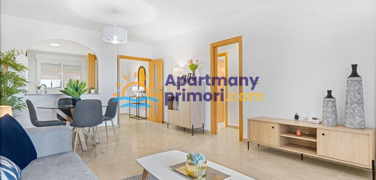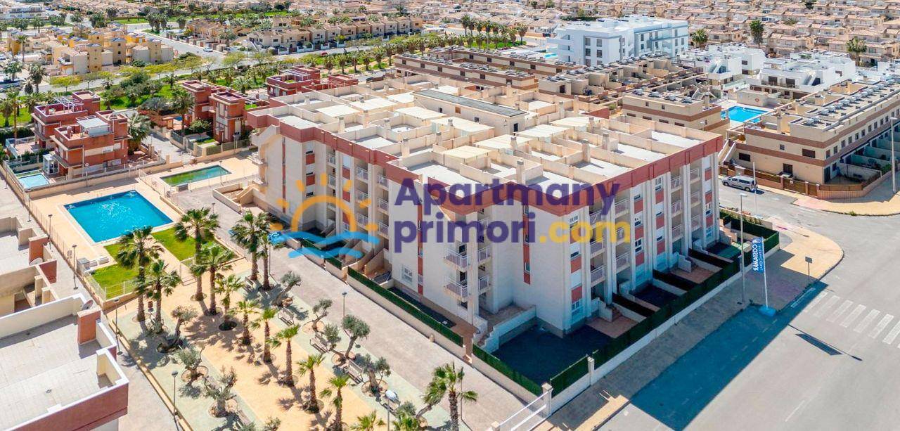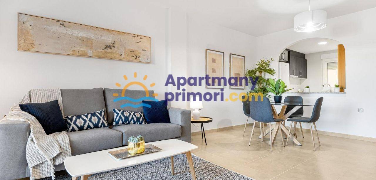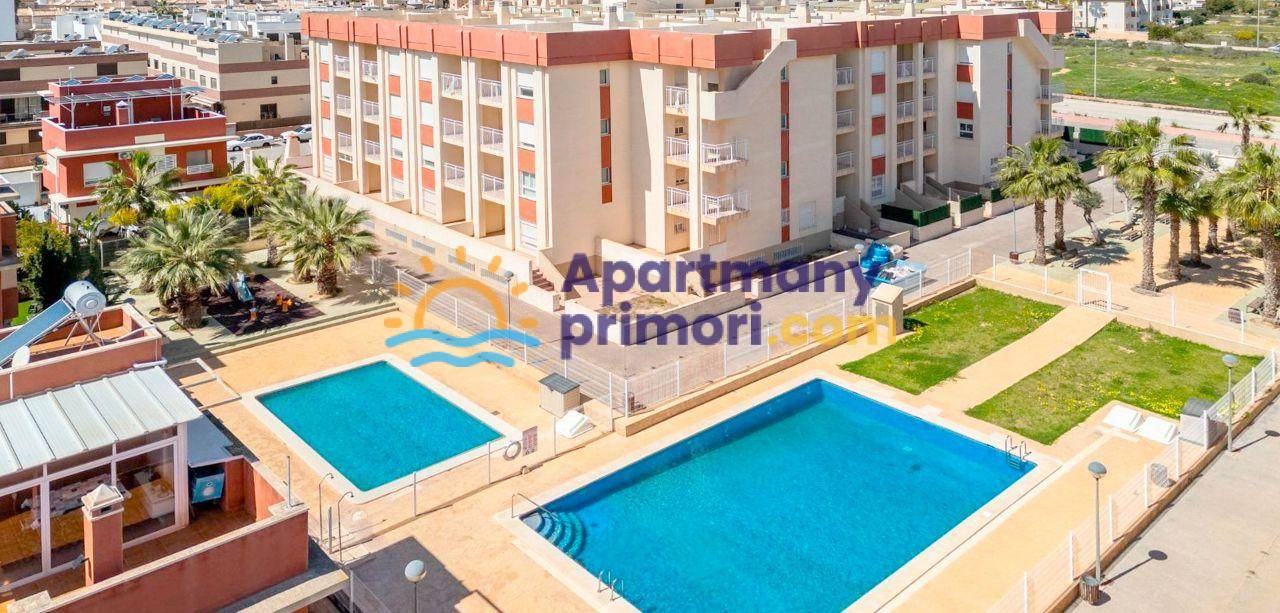 Realitná kancelária Leaders & Partners vám ponúka na predaj zariadený apartmán 3+kk (69 m²) s dvomi kúpeľňami a verandou, ktorý sa nachádza v rezidenčnom komplexe so spoločným bazénom v lukratívnej lokalite Orihuela Costa – Cabo Roig, približne 2 km od mora.