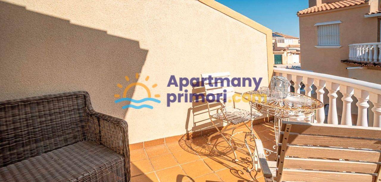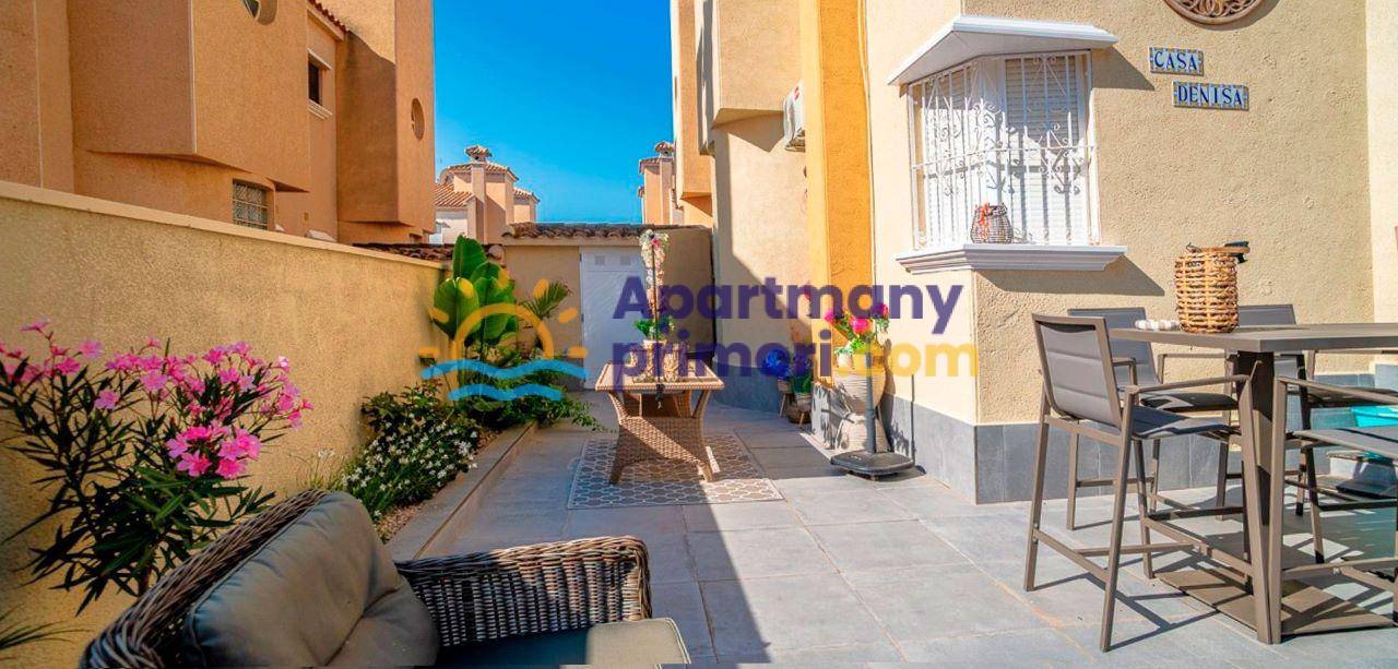 Realitná kancelária Leaders & Partners Vám ponúka na predaj pekný dvojpodlažný dom 3+1 (72 m²) + pozemok (200 m²) s 2 kúpeľňami, s peknou terasou a spoločným bazénom. Dom sa nachádza v rezidenčnom komplexe v lokalite Orihuela Costa - La Florida v Španielsku. Vzdialenosť od mora a pláže Playa Flamenca cca 1 km. K domu patrí aj vlastné parkovacie miesto. Vynikajúca voľba ako na trvalé bývanie, tak na dovolenku.