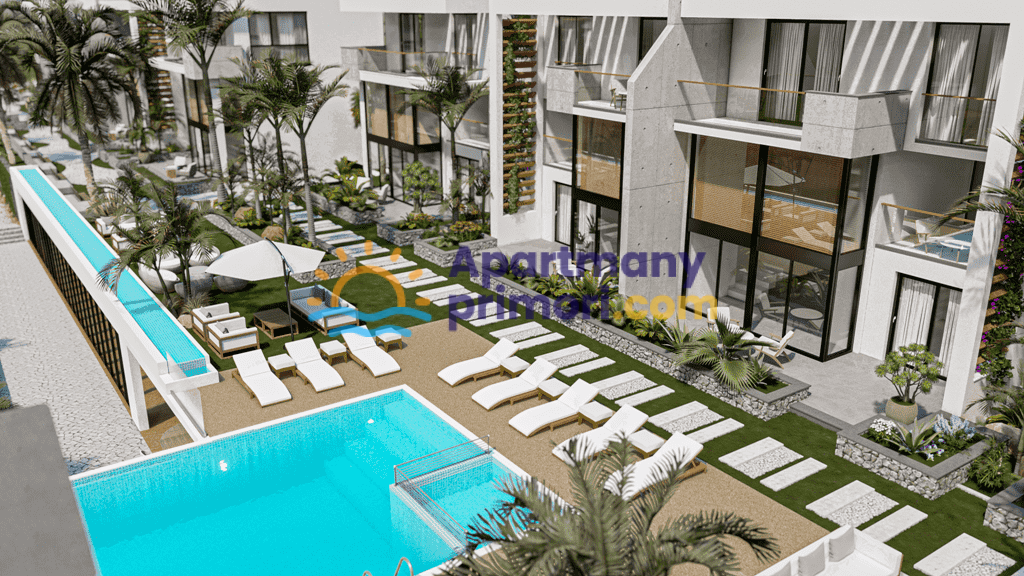 záhradné byty 87 m² 1 + 1 cena od : 245.500 £ záhradné byty 136 m² 2 + 1 cena od : 299.5000 £ Lokalizácia nehnuteľnosti : Nachádza sa v oblasti Esentepe Cyprus. Luxus, súkromie, vysoko kvalitné materiály a jedinečná poloha sú všetko, na čo si spomeniete, keď spoznáte svoju novú úžasnú nehnuteľnosť na Severnom Cypre za prijateľnú cenu. Toto miesto je ideálne pre milovníkov prírody, ktorí hľadajú ticho, pokoj a relatívnu izoláciu, ale aj blízko miestnych barov, taverien a reštaurácií…. Dajte si drink na terase, skočte si do teplej vody v bazéne alebo len tak relaxujte a užívajte si krásny východ a západ slnka v tropickom raji. Najlepšia kombinácia dovolenkového domu na Severnom Cypre… Dizajn je zameraný na materiály šetrné k životnému prostrediu, s trvalo udržateľnými technikami a je tu plán byť v súlade s prírodou. Všetky detaily sú veľmi premyslené, kvalitný život v pokojnom prostredí.Vybavenie nehnuteľnosti