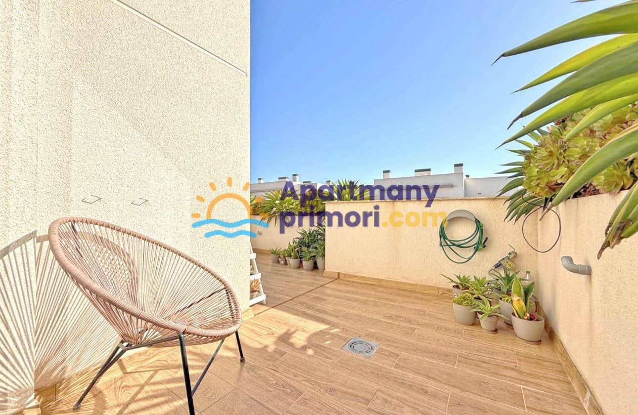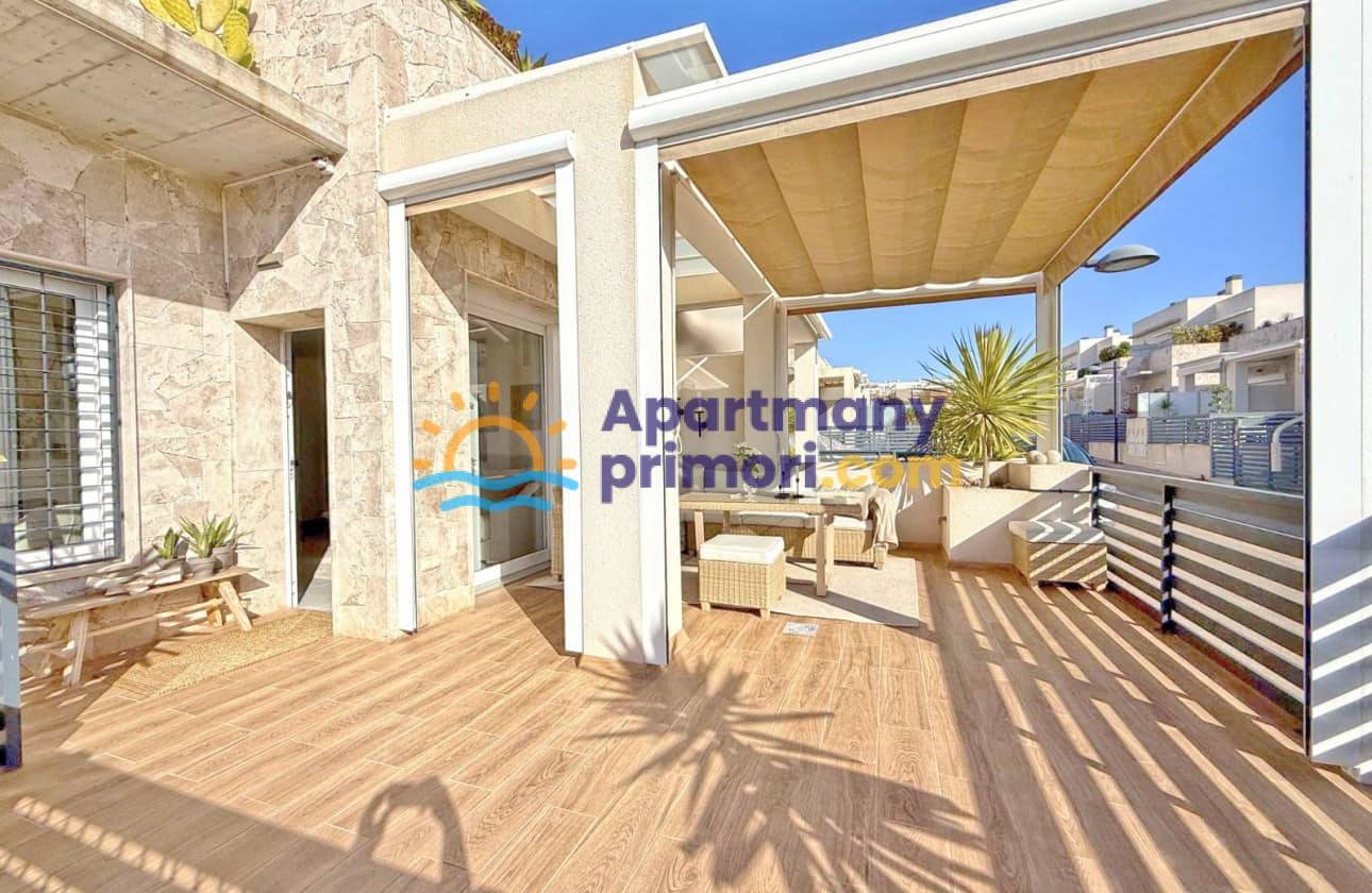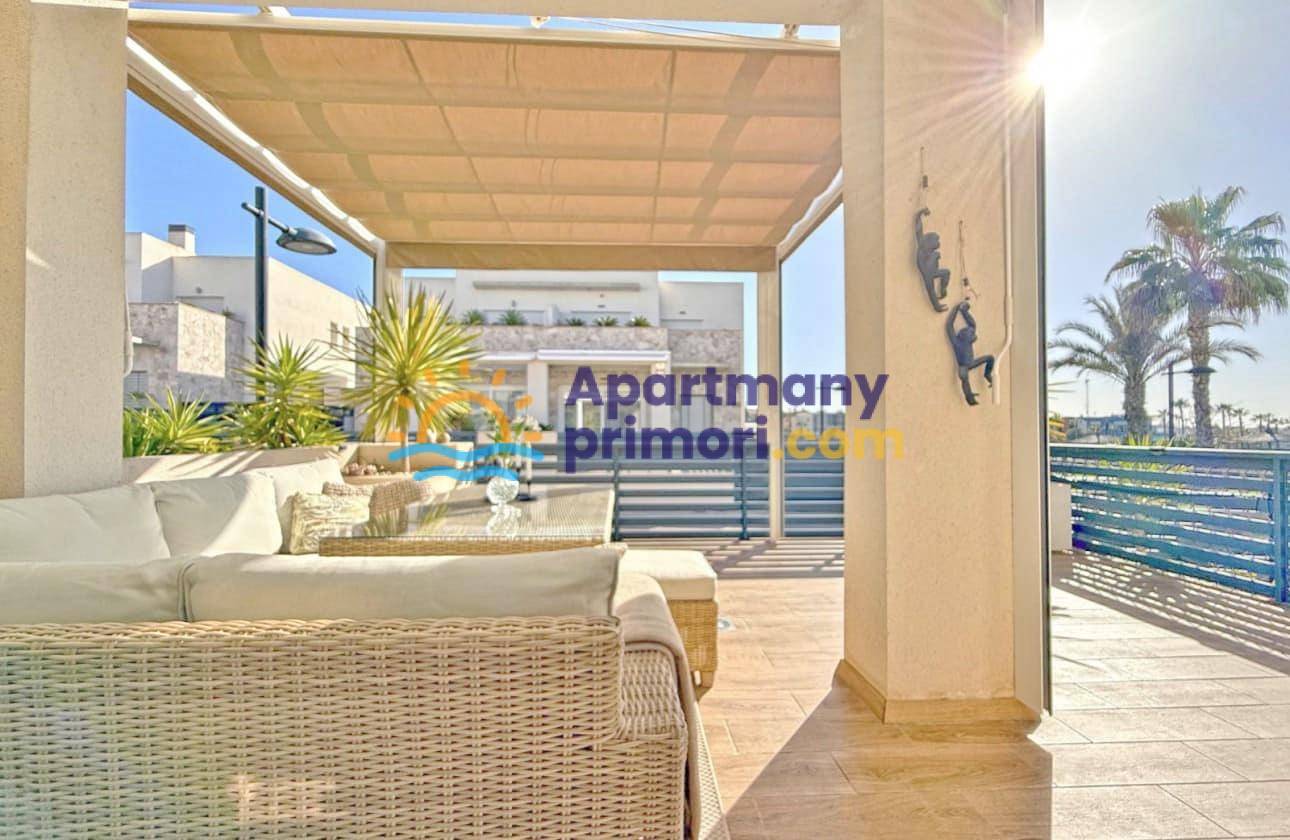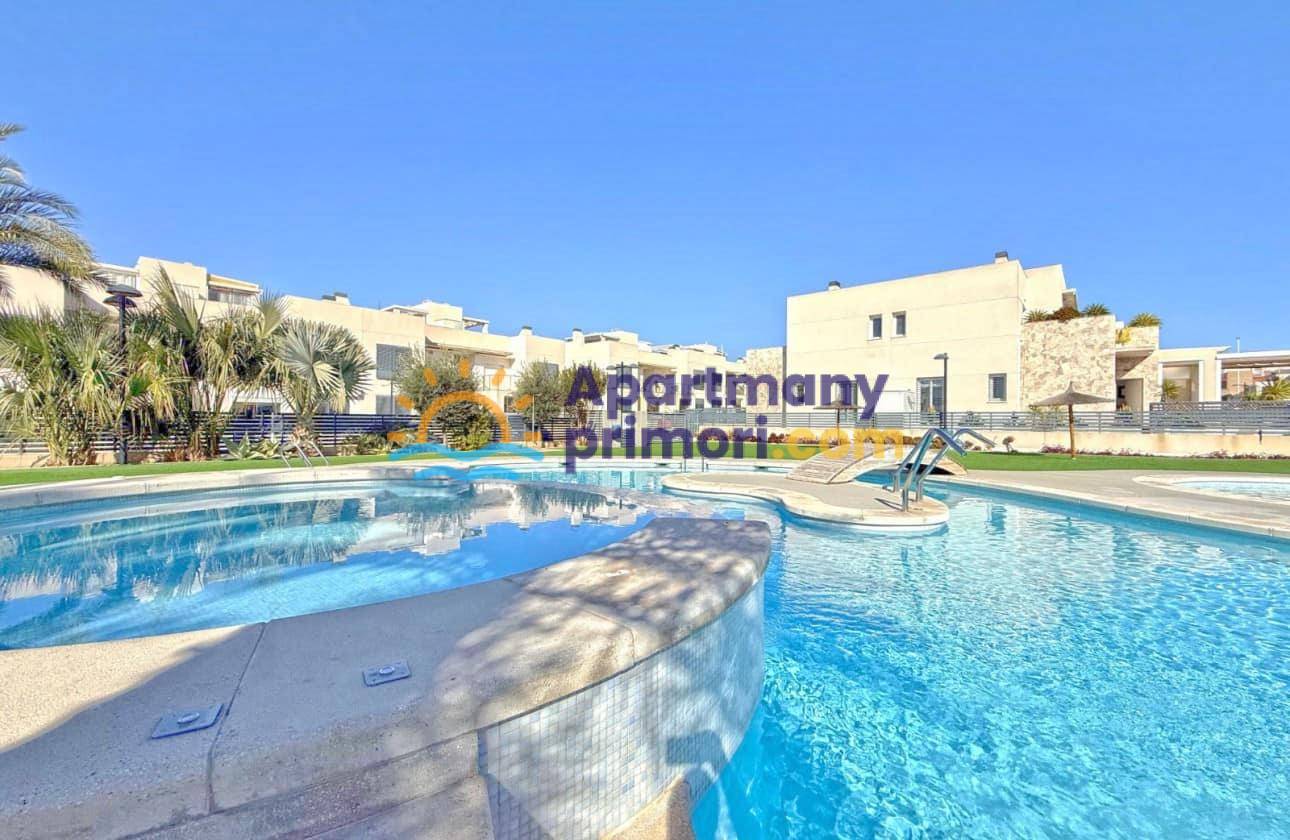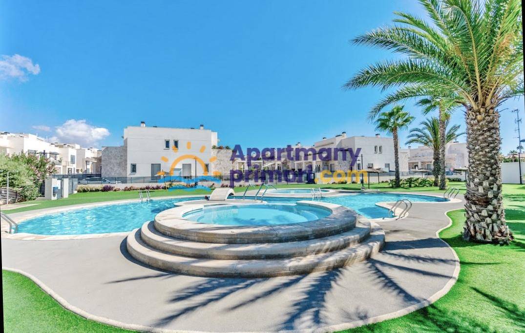Realitná kancelária Leaders & Partners Vám ponúka na predaj luxusný dom 4 kk (100 m²) s 3 kúpeľňami a krásnu verandu na posedenie v prestížnom rekreačnom komplexe v pokojnej oblasti Aguas Nuevas, Torrevieja v Španielsku. Dom sa nachádza v blízkosti pláží, obchodov, reštaurácií a všetkej občianskej vybavenosti.
