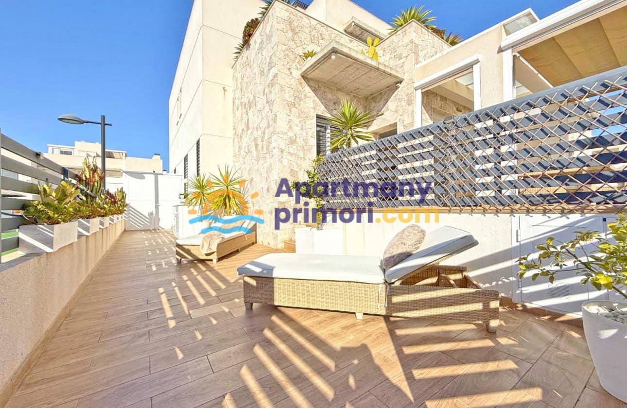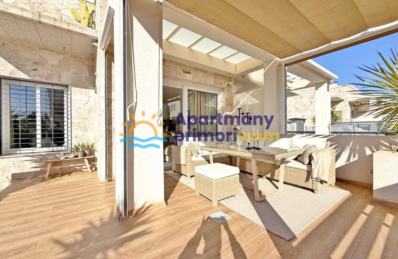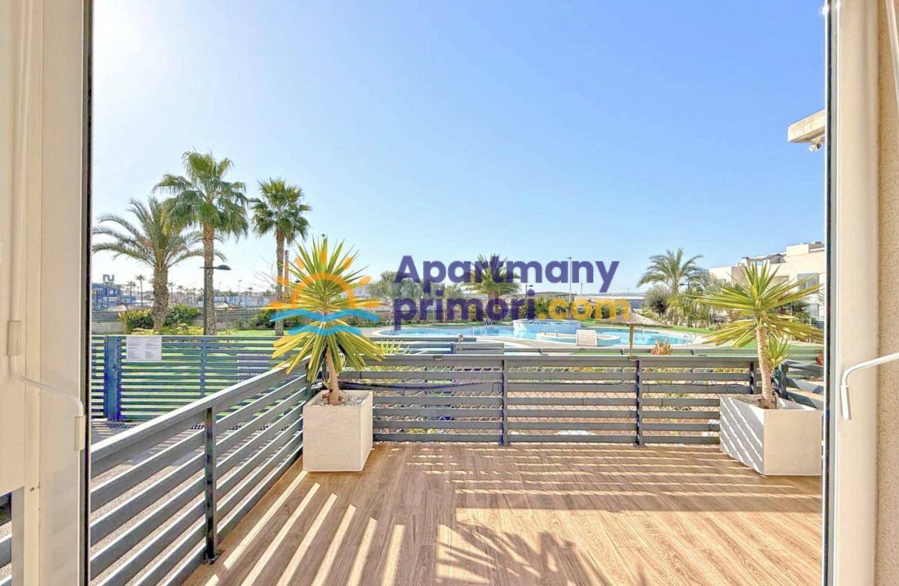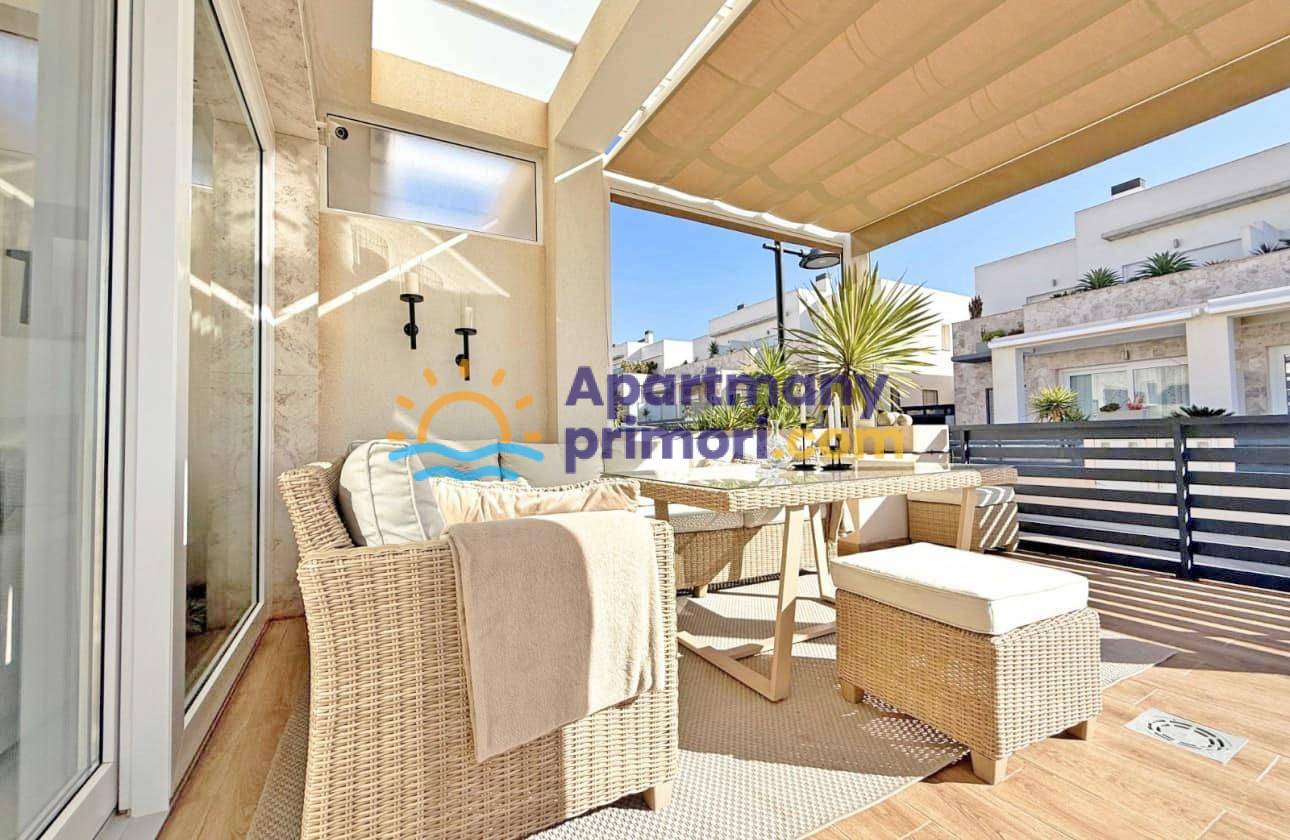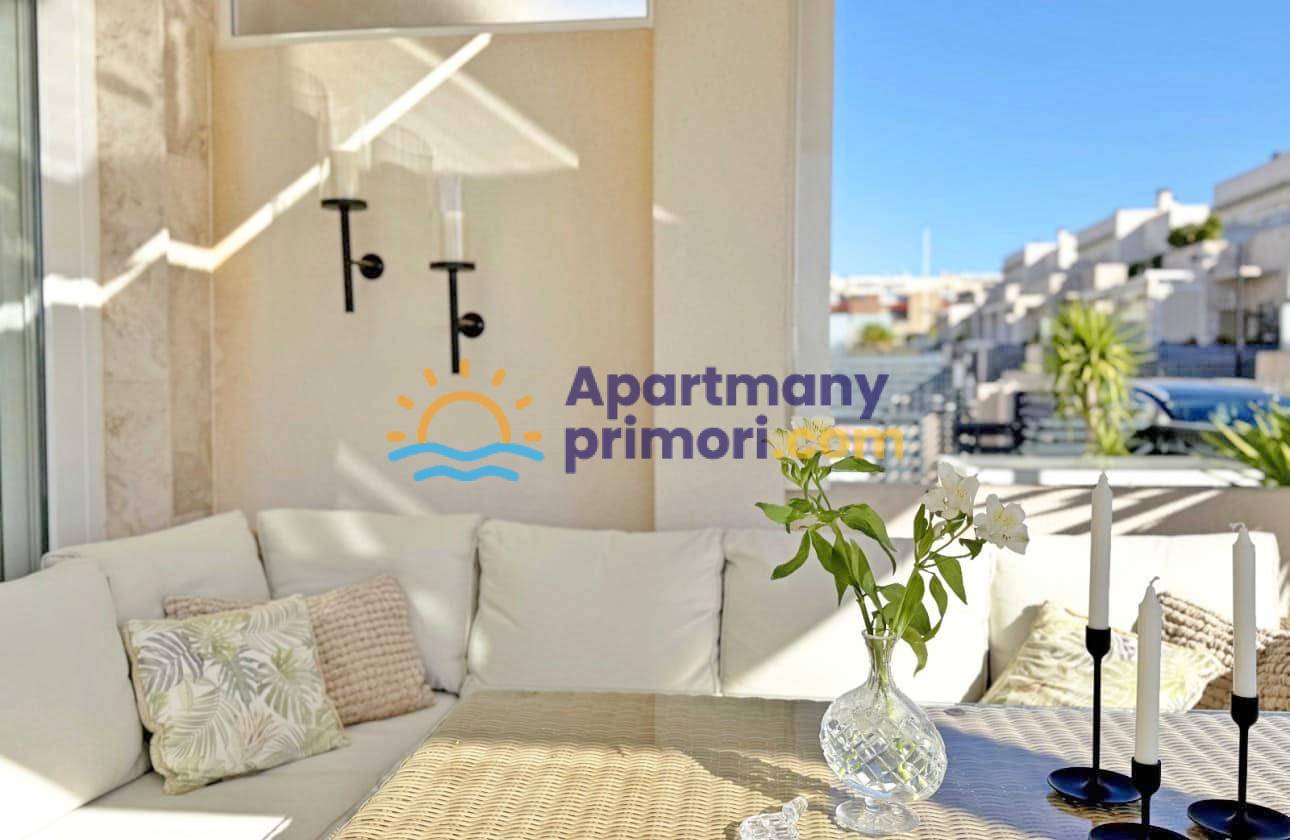 Realitná kancelária Leaders & Partners Vám ponúka na predaj luxusný dom 4 kk (100 m²) s 3 kúpeľňami a krásnu verandu na posedenie v prestížnom rekreačnom komplexe v pokojnej oblasti Aguas Nuevas, Torrevieja v Španielsku. Dom sa nachádza v blízkosti pláží, obchodov, reštaurácií a všetkej občianskej vybavenosti.
