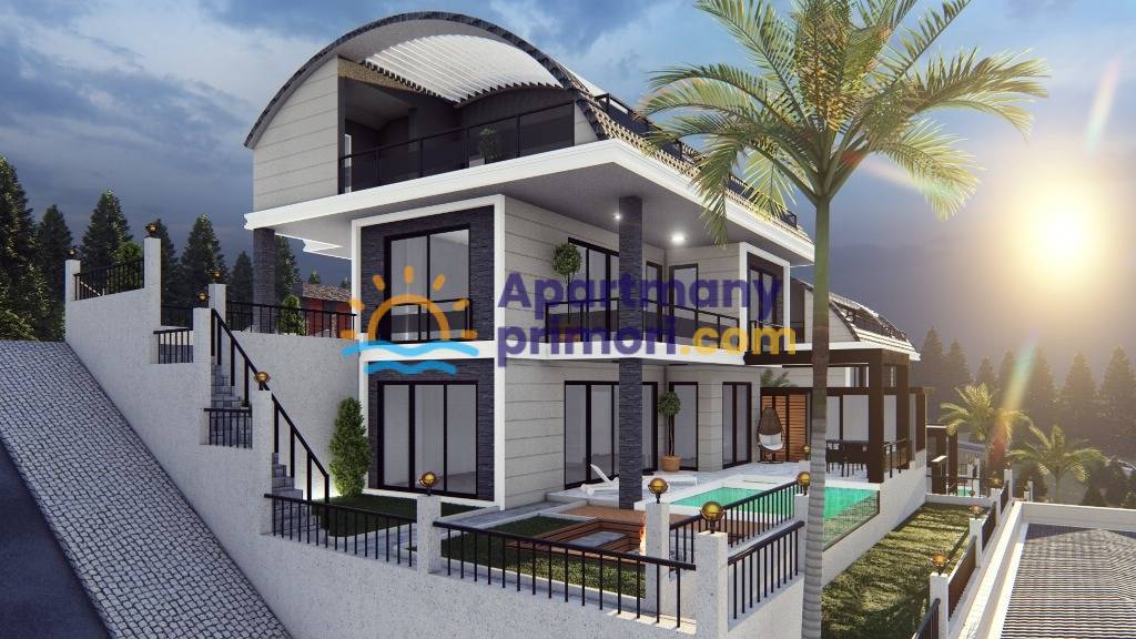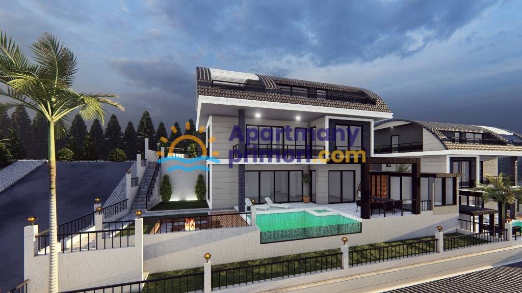 Moderná luxusná vila na predaj v Alanya Bektaş Turecko - výhľad na more APM