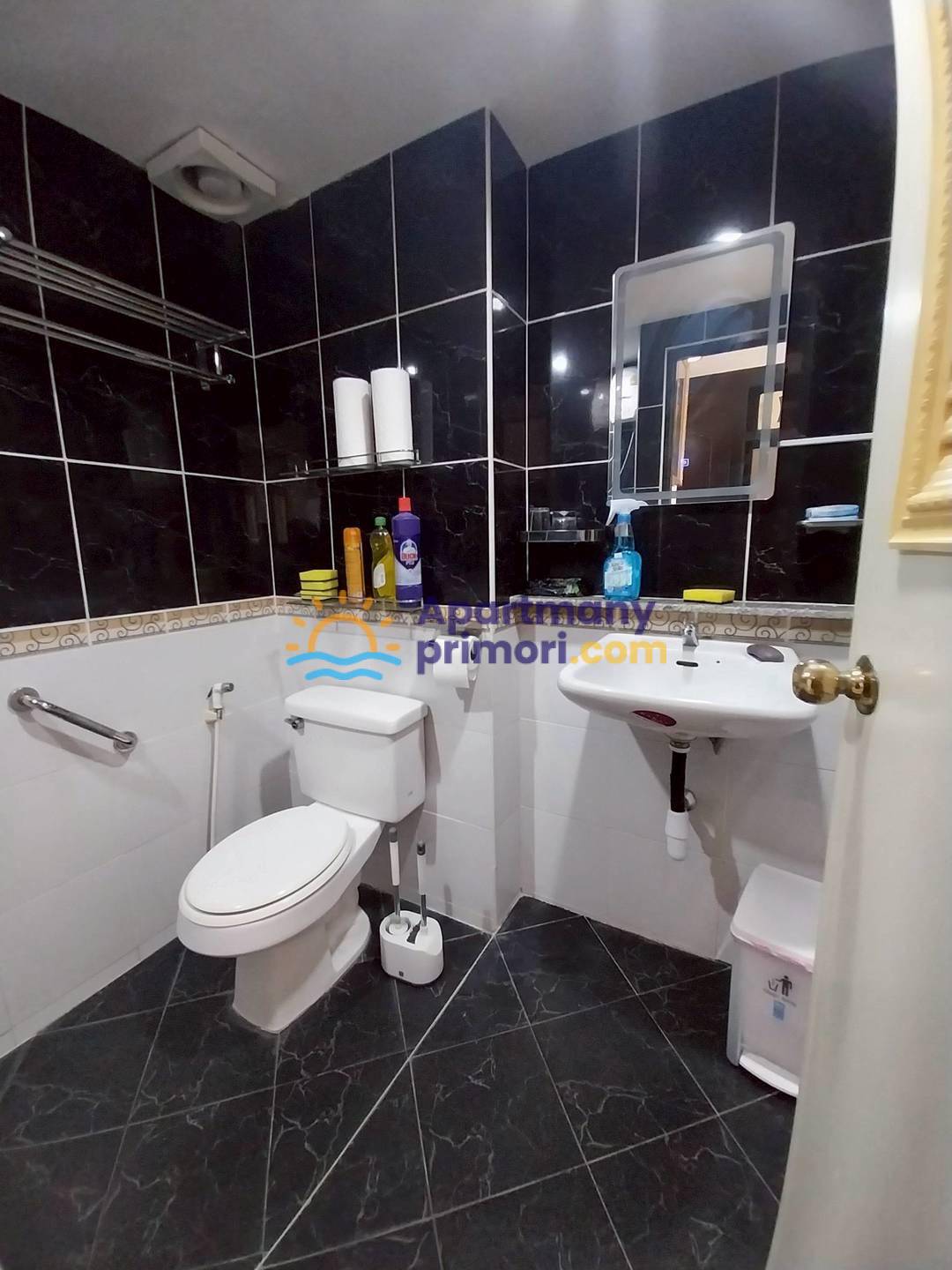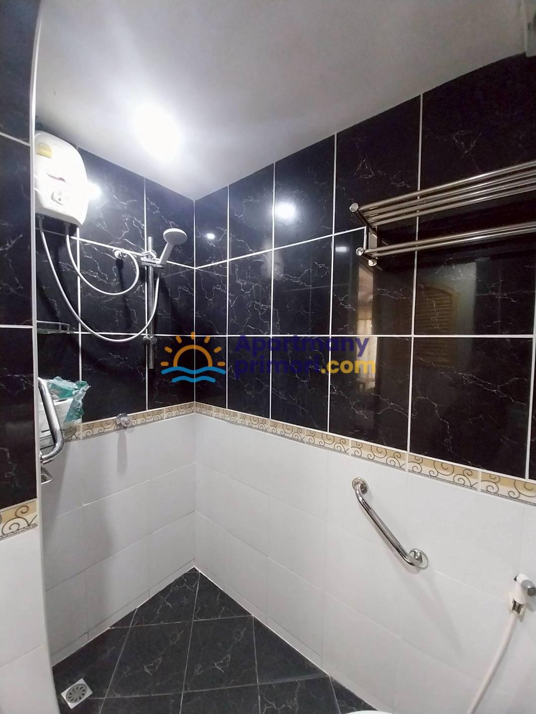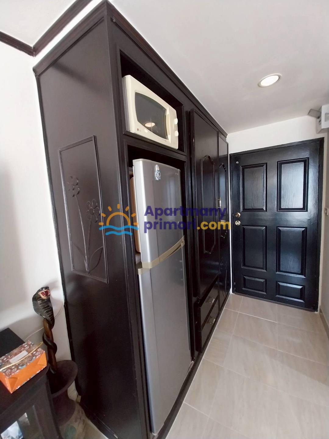 Apartmán sa skladá z jednej izby v ktorej sa nachádza manželská posteľ, gauč s TV, kúpeľňa so sprchovým kútom a WC. Apartmán má balkón. V byte je klimatizácia. Apartmán je zariadený – chladnička, práčka, jedálenský stôl, gauč, TV, manželská posteľ. K dispozícii je bazén, 24 h security s CCTV, parkovanie.